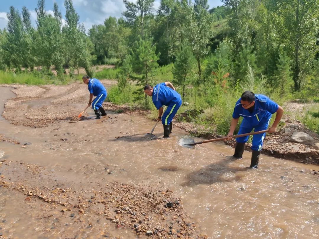 受持續強降雨及大風影響,張家口市張北縣部分地區發生重大氣象災害,中國節能所屬風電公司洗馬林10萬千瓦風電場附近路段出現山體滑坡、塌方,落石阻斷道路,嚴重影響風場運維及屬地居民出行。洗馬林風電場迅速派出十名運維人員,在大雨暫停后清理被阻斷的道路及積水積沙積石的溝道,保障村民出行安全;同時持續做好強降雨天氣下的設備巡檢與維護,確保抗洪救災用電穩定。